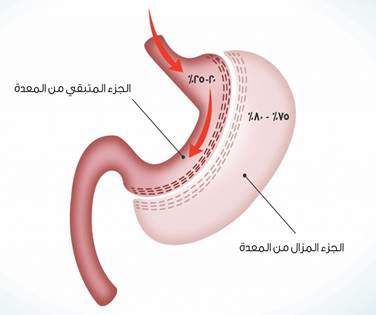| تكميم المعدة | قص 70 إلى 80% من العدة لتصبح في شكل انبوب | تقليل كمية الطعام وتقليل هرمون الجوع | خسارة سريعة في الوزن وتحسين من الأمراض المزمنة | احتمالية التسريب أو ارتجاع المعدة |