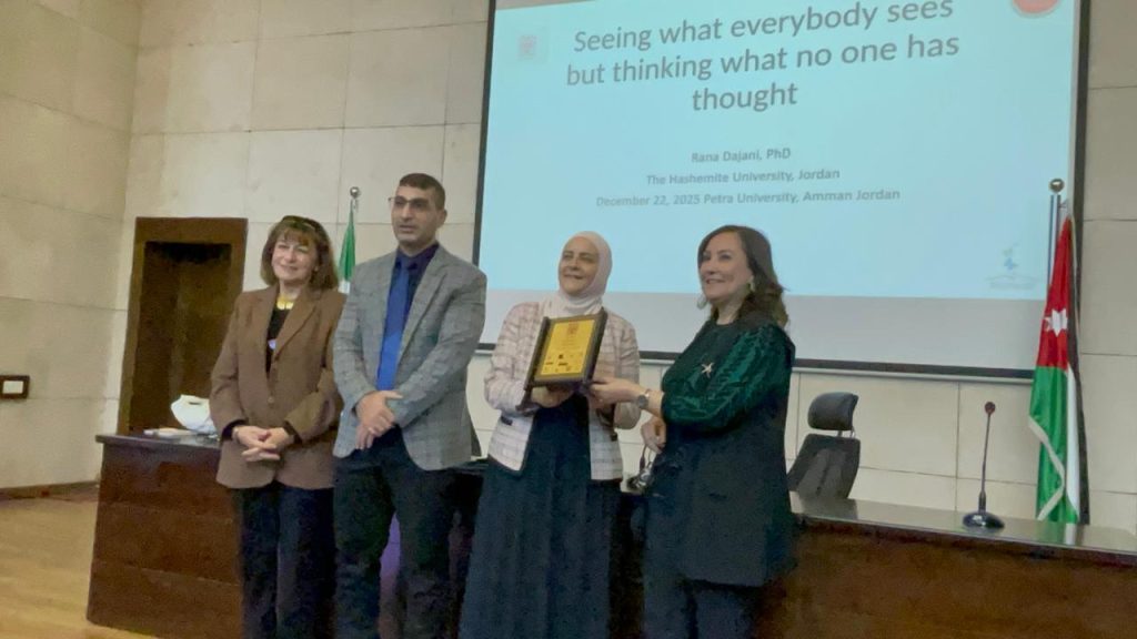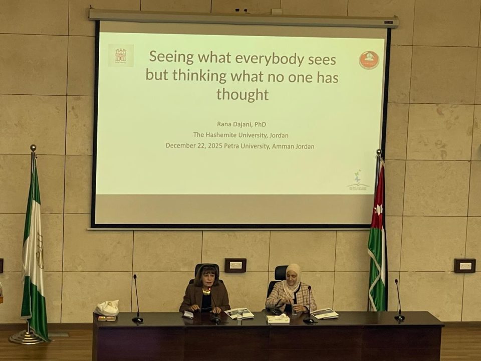 نظّمت جامعة البترا، من خلال اللجنة الثقافية في كلية الآداب والعلوم، أمس الأوّل الاثنين، محاضرة تفاعليّة بعنوان “أن ترى ما يراه الناس… لكن تفكّر بطريقة مختلفة”، قدّمتها الدكتورة رنا الدجاني، أستاذة علم الأحياء والبيوتكنولوجي في الجامعة الهاشمية.