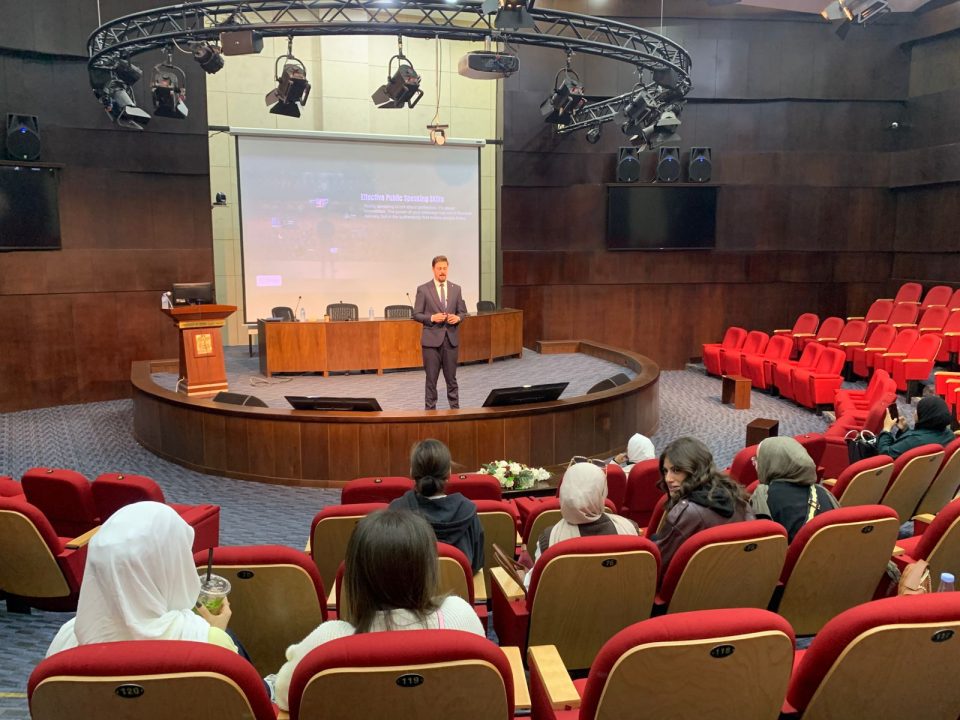 نظّمت جامعة البترا، اليوم الثلاثاء، ورشة “فن التحدُّث أمام” الجمهور، وقدّمها المدرب طارق المرعي، على مسرح الأنباط في كليّة الاعلام.