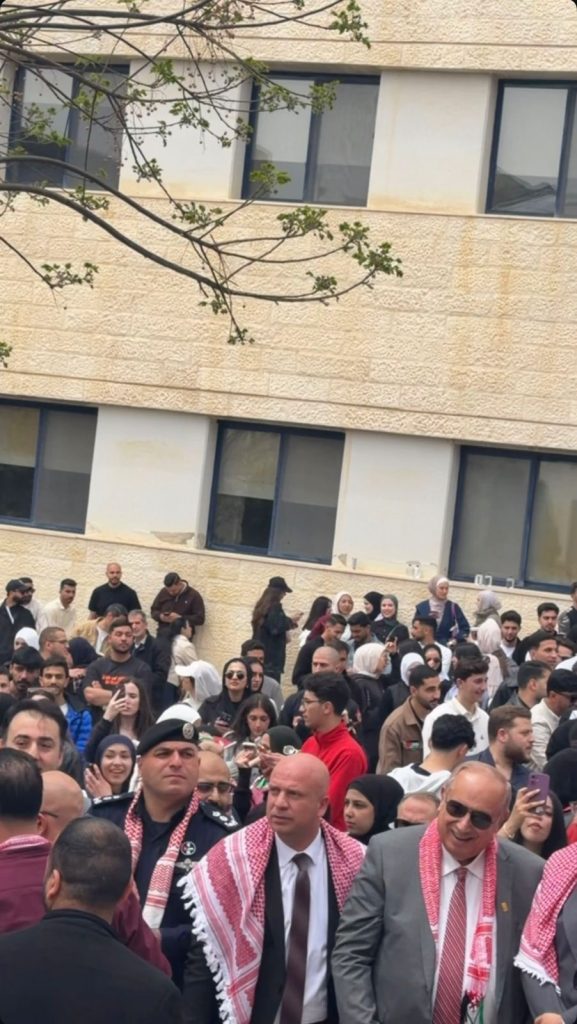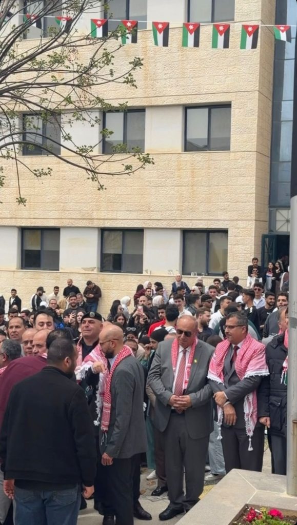 ولم تغب مشاعر الطلبة عن المشهد، حيث ألقى الطالب إبراهيم السيوف من كليّة الحقوق كلمةً عبّر فيها عن اعتزازه بالعلم الأردني، قائلاً:
